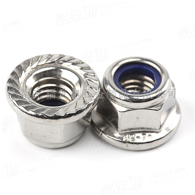304不锈钢A2-70六角法兰尼龙锁紧螺母蓝尼带齿DIN6926